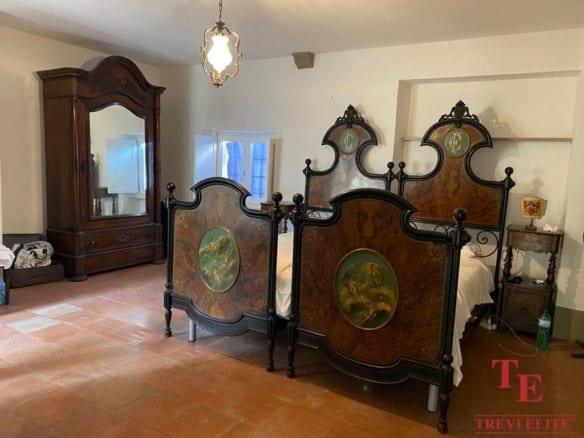 Представительская зона занимает весь второй этаж здания и состоит из большой гостиной с фресками, кабинета, большой столовой, комнаты для отдыха, комнаты для хобби, большой полностью оборудованной кухни с центральным островком, прачечной и террасы. На этом этаже также расположены две ванные комнаты: одна с душем, другая – для гостей. Спальная зона расположена на втором этаже и состоит из шести спален на двенадцать спальных мест, две из которых украшены фресками, трех ванных комнат, одна из которых с душем, ванной комнаты для гостей и просторной ванной комнаты с джакузи. В главной спальне, площадью около 50 кв. м, имеется ванная комната с душем, а также небольшое помещение, куда уже подведены коммуникации для использования его в качестве сауны. На этом этаже также имеются коммуникации для создания кухни,а также два балкона с видом на церковь и башню замка. Первый этаж площадью около 250 кв. м с шестью выходами на центральную площадь нуждается в ремонте, но имеет ценные конструктивные элементы, такие как сводчатые потолки. Здесь имеется также помещение площадью около 80 кв.м.с колодцем с артезианской водой. Этот этаж представляет собой прекрасную возможность для использования в качестве коммерческого ресторана. Наконец, имеется также чердак площадью около 50 кв. м, нуждающийся в ремонте, но имеющий отопительные коммуникации.