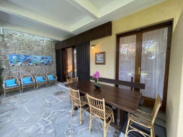 Также из гостиной можно попасть на кухню с отдельным выходом на внешнюю веранду, где мы находим еще один обеденный стол.