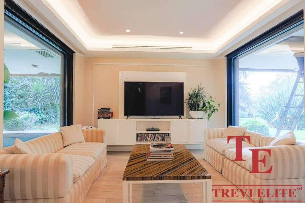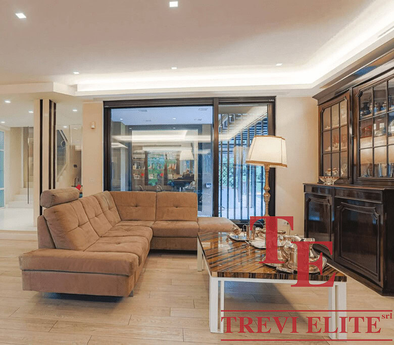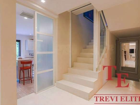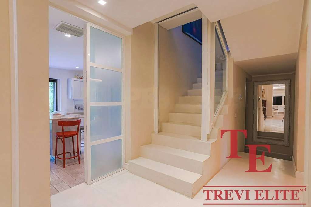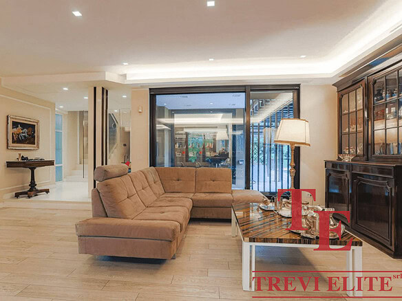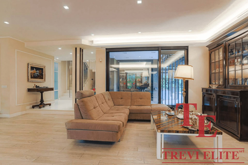 Вилла окружена великолепным парком площадью 3 500 м², где расположен просторный бассейн, создающий атмосферу роскоши и релакса. Дом с бассейном в Риме выполнен в современном стиле и разделен на три уровня: