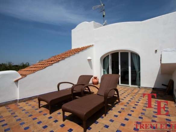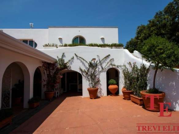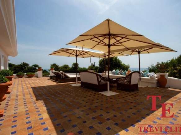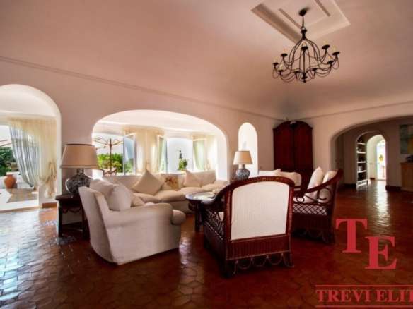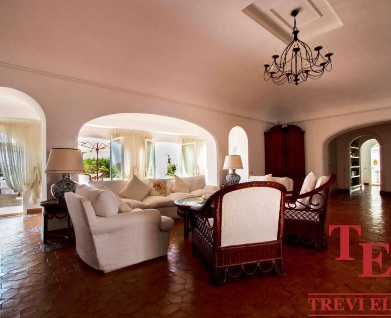 - Гостиная и террасы: просторная гостиная (130 кв.м) с камином, обеденная зона и панорамные террасы с захватывающим видом на Тирренское море и Понтийские острова.