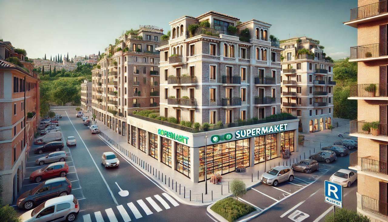 В продаже коммерческое помещение – супермаркет в Риме, в районе Монте Сакро.