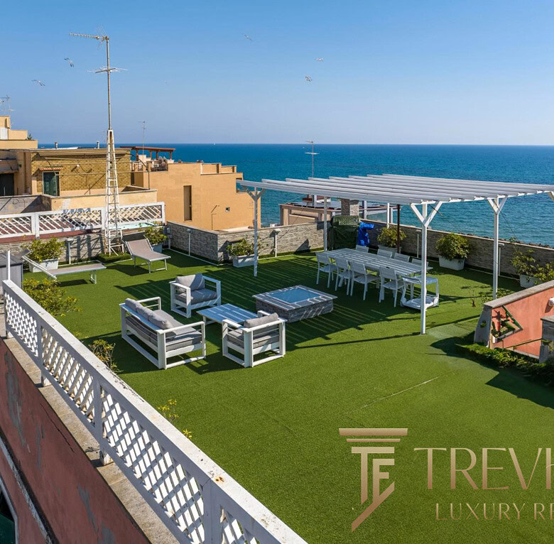 Апартаменты находятся на пятом этаже традиционного итальянского здания без лифта и занимают всю его площадь. Общая внутренняя площадь составляет 180 м², а коммерческая площадь — 229 м², что делает это предложение особенно привлекательным для семей, желающих просторное жильё на побережье, или для инвесторов, рассматривающих недвижимость в Италии под сдачу в аренду.