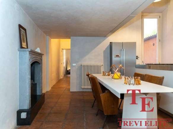 Просторная, шикарная гостиная, с небольшим балконом (на нём спокойно размещаются 2 кресла и маленький столик) и тремя большими окнами, выходящими на приятную для глаз аллею Скаволино. Лестница ведет на мансарду, где находится спальня с видом на гостиную, отделённая стеклянной стеной для обеспечения конфиденциальности. Всего три ванные комнаты.