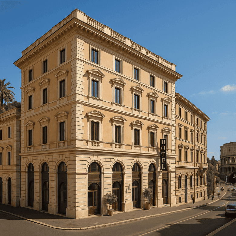 Отель 4* в центре Рима занимает здание площадью около 7 000 м² и идеально подходит как для международных туристов, так и для деловых путешественников.