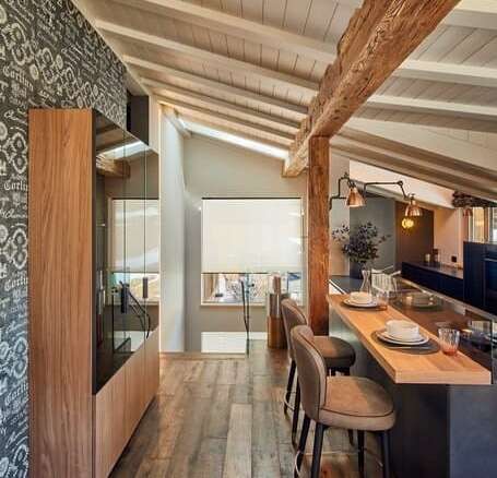 Каждый апартамент тщательно продуман, элегантно меблирован и функционально оборудован для комфортного проживания. Квартиры оснащены саунами, что идеально подходит для релаксации после активного дня на лыжных трассах или велосипедных прогулок. На подземном этаже оборудованы специальные помещения для сушки горнолыжных ботинок. Парковочные места на территории. Есть также гараж, где можно разместить стеллажи для хранения лыж и ботинок.
