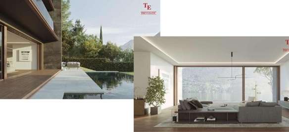 Общая площадь дома на озере Комо составляет 420 м² и включает в себя просторные и светлые комнаты с очень высокими потолками, создающие ощущение воздушности и открытости пространства. Вилла идеально подходит для тех, кто ценит уединение, качество и эстетику в каждой детали.
