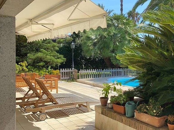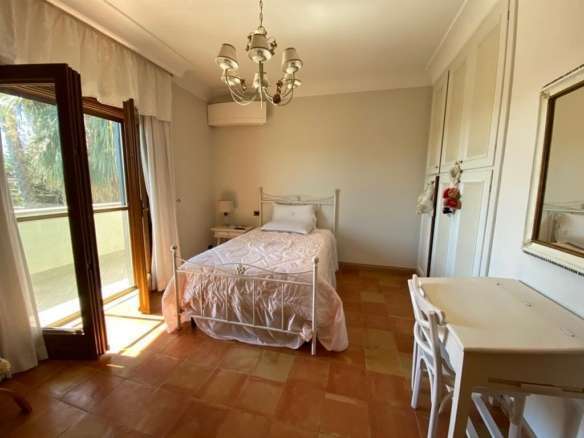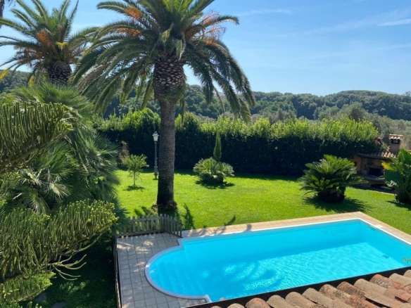 Виллу окружает сад 1000 м2 с бассейном, зоной барбекю, дровяной печью, верандой, системой освещения и полива с автономным колодцем, дорожками из вулканического туфа.