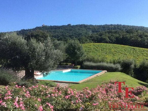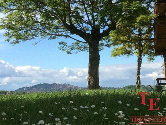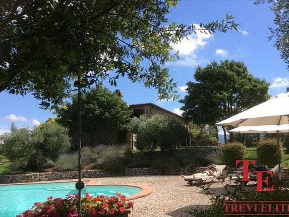 Сад 0,5 га с оливковыми деревьями и кленами, бассейн. Загородный дом в Умбрии окружен лесом и полями.