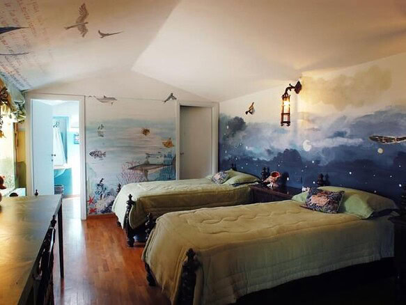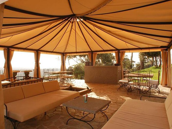 Вилла (замок) соединяет в себе особенную архитектуру и роскошные интерьеры, эксклюзивный дизайн и современные технологии. Подогреваемый бассейн, зона СПА, частный пляж, внимательный обслуживающий персонал и личный повар. К услугам гостей машина с водителем для поездок до частного пляжа. На территории находится теннисный корт и футбольное поле. Замок площадью 2000 кв.м. состоит из просторного холла, роскошного салона для приемов, библиотеки, зала ТВ, столовой с выходом на великолепную панорамную террасу, зала для завтраков, профессиональной кухни, игровой компьютерной комнаты, 12 спален, 13 ванных комнат. К замку прилегает средневековая башня, внутри которой находится отдельная квартира с романтической обстановкой, состоящая из гостиной, кухни и двух ванных комнат.